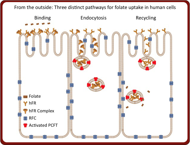 Humans possess at least three distinct transport pathways for the uptake of folates and antifolates into the cell. Antifolates have been used in the treatment of patients with cancer and autoinflammatory disease since the late 1940s. While cytotoxicity at higher doses leads to limited utility in the clinic, classical and newer generation antifolates – most often methotrexate and pemetrexed, respectively – are still widely used to treat cancers derived from epithelial cell lineages (e.g. leukemia, choriocarcinoma, ovarian and breast cancers) and autoinflammatory diseases (e.g. rheumatoid arthritis, psoriasis, Crohn’s disease). The efficacy of antifolates is comprised by dose-limiting toxicity based on transport into normal cells.